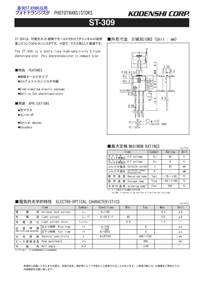 KODENSHI CORP ST-309 数据手册.pdf