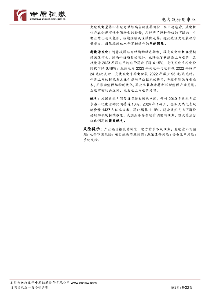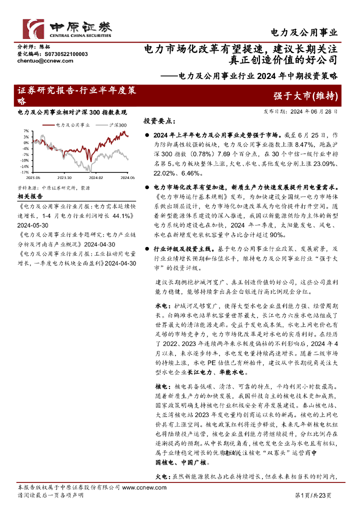 中原证券:电力及公用事业行业2024年中期投资策略:电力市场化改革有望提速,建议长期关注真正创造价值的好公司.pdf