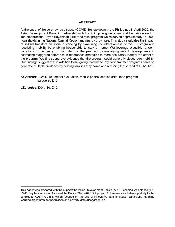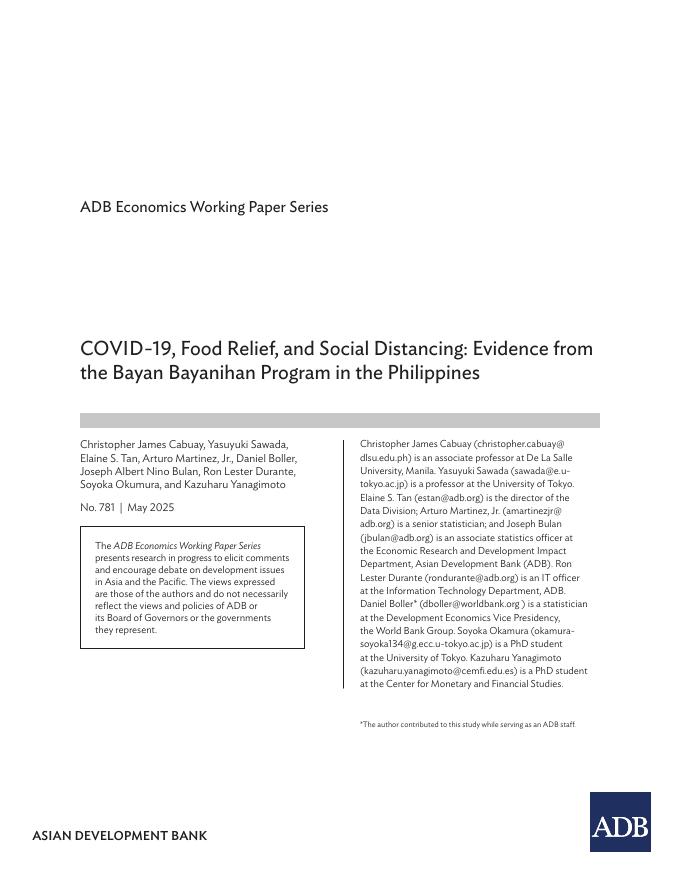 ADB亚洲开发银行:新冠肺炎、粮食救济和社会距离:来自菲律宾巴彦-巴彦尼汉项目的证据(英文版).pdf