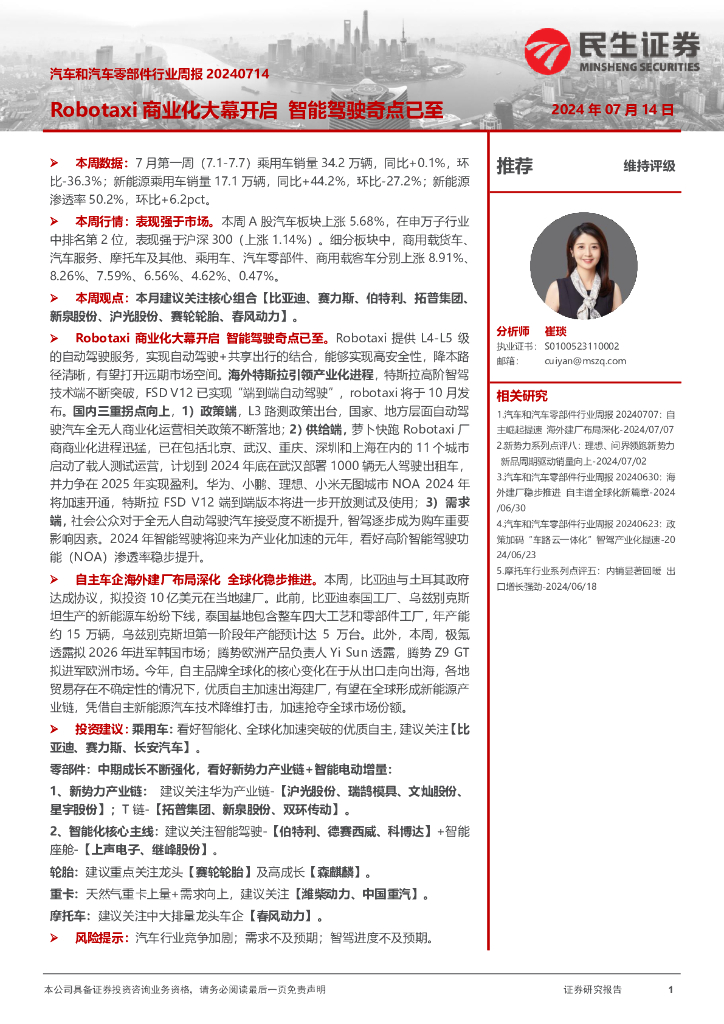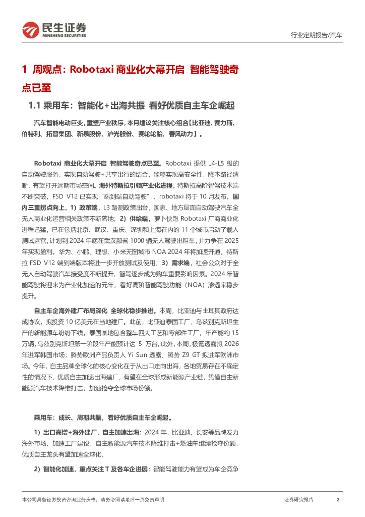 民生证券:汽车和汽车零部件行业周报:Robotaxi商业化大幕开启智能驾驶奇点已至.pdf