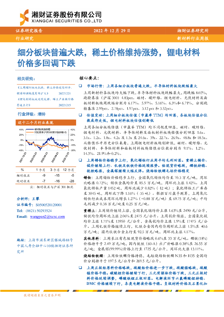 湘财证券:新材料行业周报:细分板块普遍大跌,稀土价格维持涨势,锂电材料价格多回调下跌.pdf