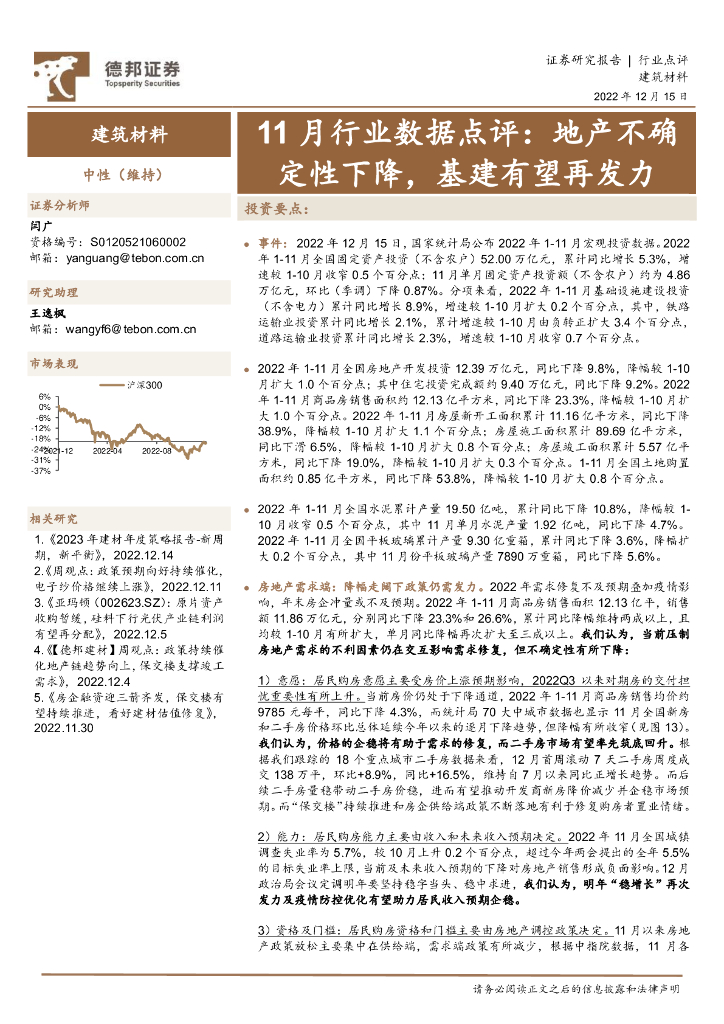 德邦证券:建筑材料11月行业数据点评:地产不确定性下降,基建有望再发力.pdf