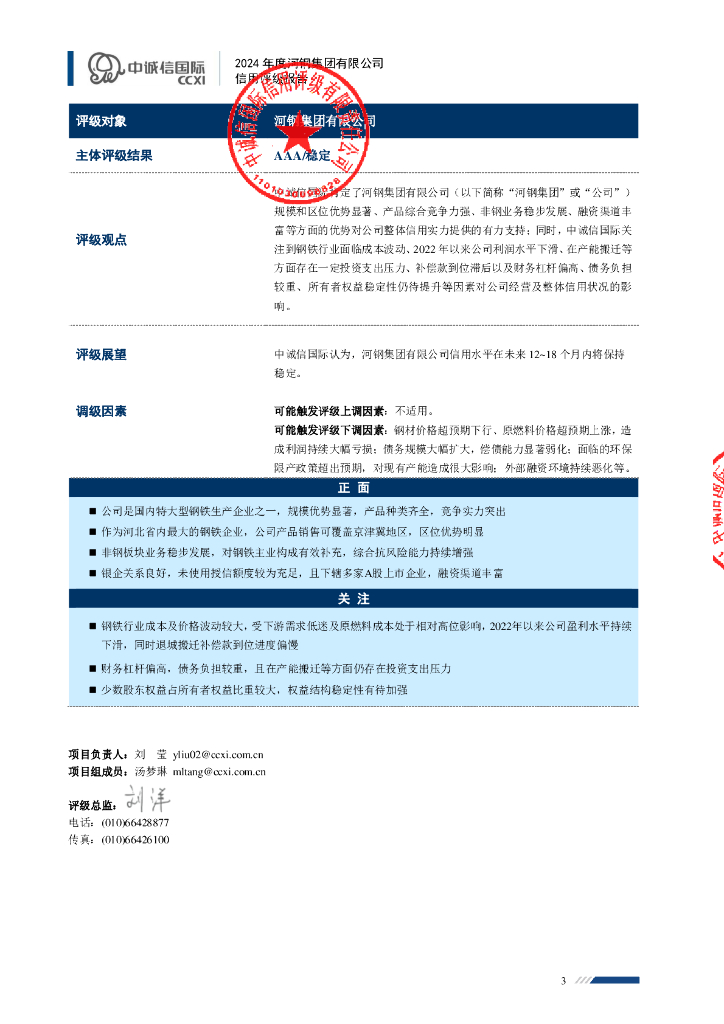 中诚信:河钢集团有限公司主体信用评级报告及跟踪评级安排.pdf