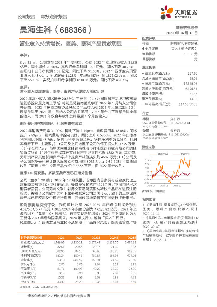 天风证券:昊海生科(688366)-营业收入持续增长,医美、眼科产品贡献明显.pdf