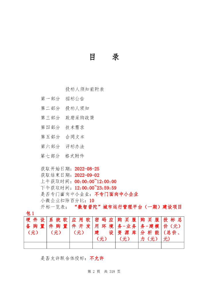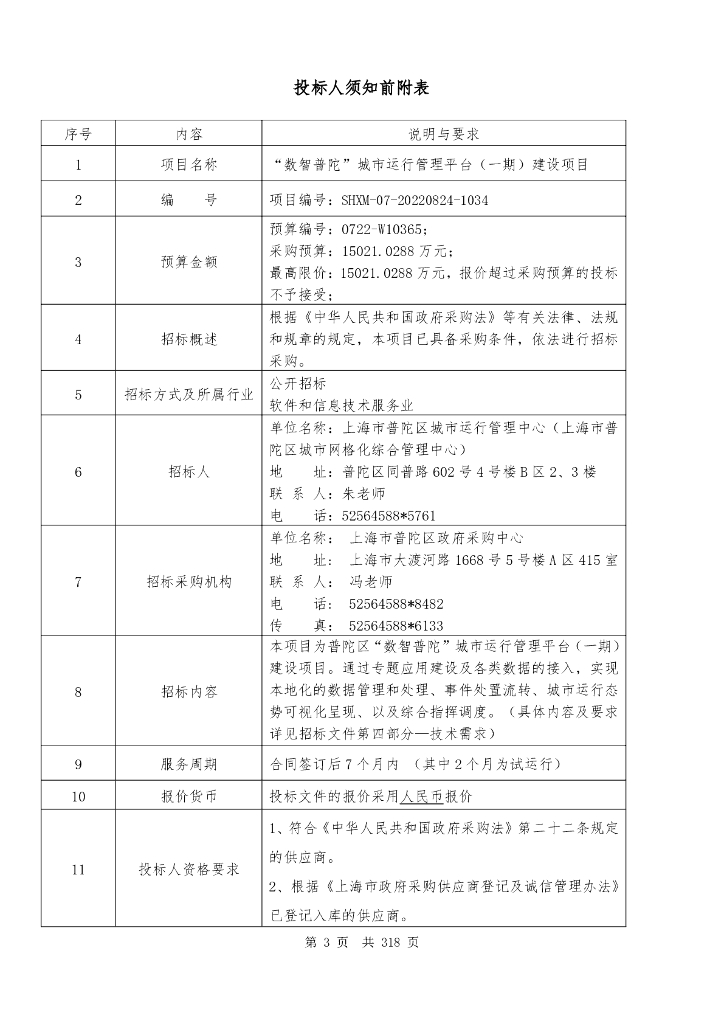 “数智普陀”城市运行管理平台(一期)建设项目招标文件.pdf