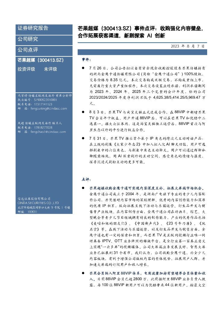 信达证券:芒果超媒(300413)-事件点评:收购强化内容壁垒,合作拓展获客渠道,新剧探索AI创新.pdf
