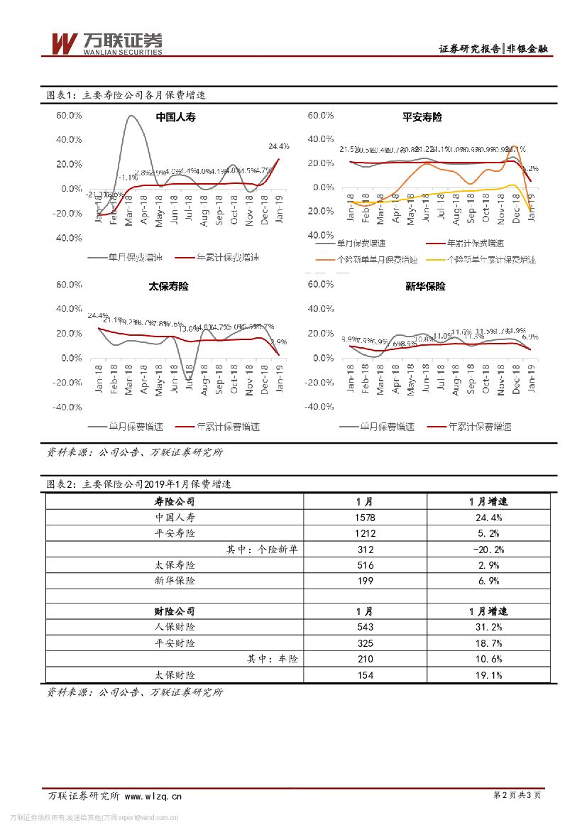 万联证券:上市险企2019年1月保费数据跟踪:开门红节奏变化,国寿人保增速领先.pdf