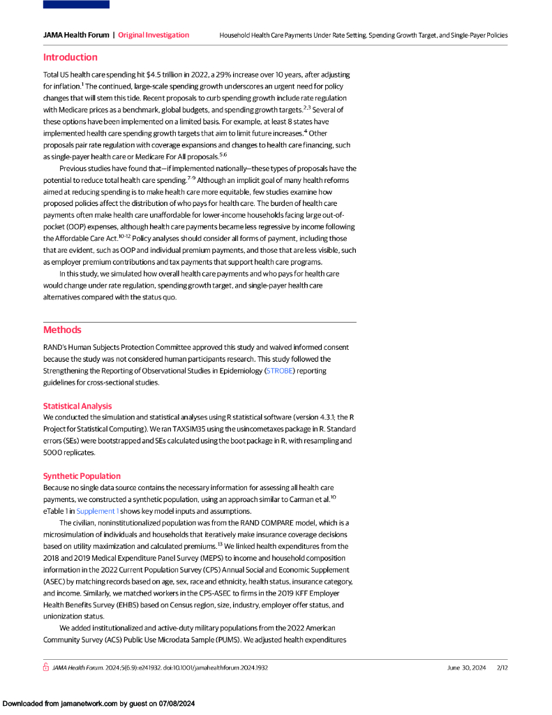 Rand兰德:利率设定、支出增长目标和单一支付者政策下的家庭医疗保健支付(英文版).pdf