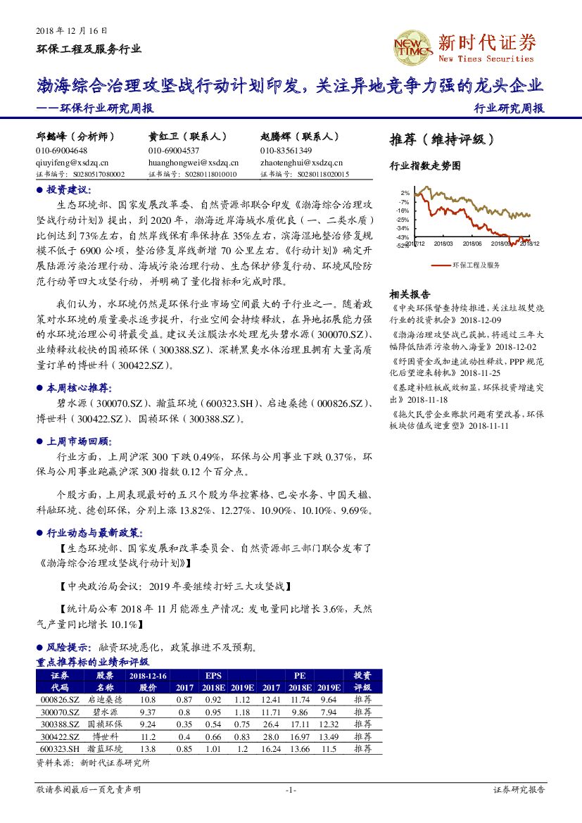 新时代证券:环保行业研究周报:渤海综合治理攻坚战行动计划印发,关注异地竞争力强的龙头企业.pdf