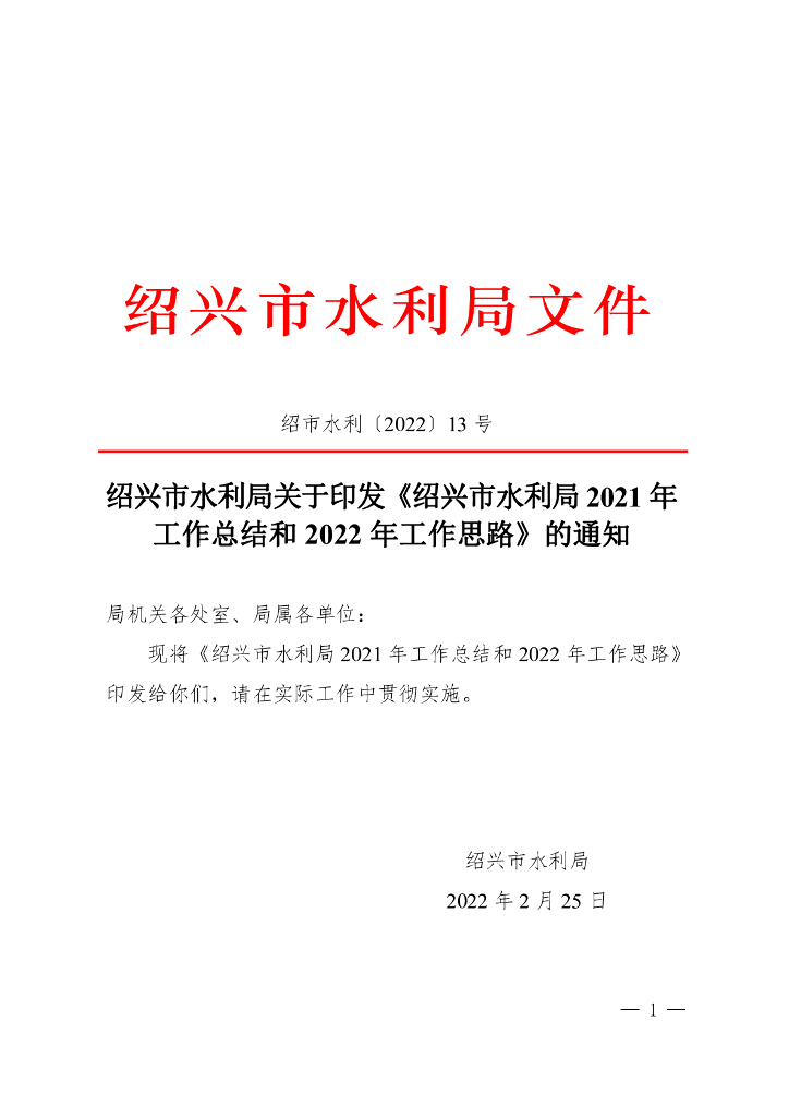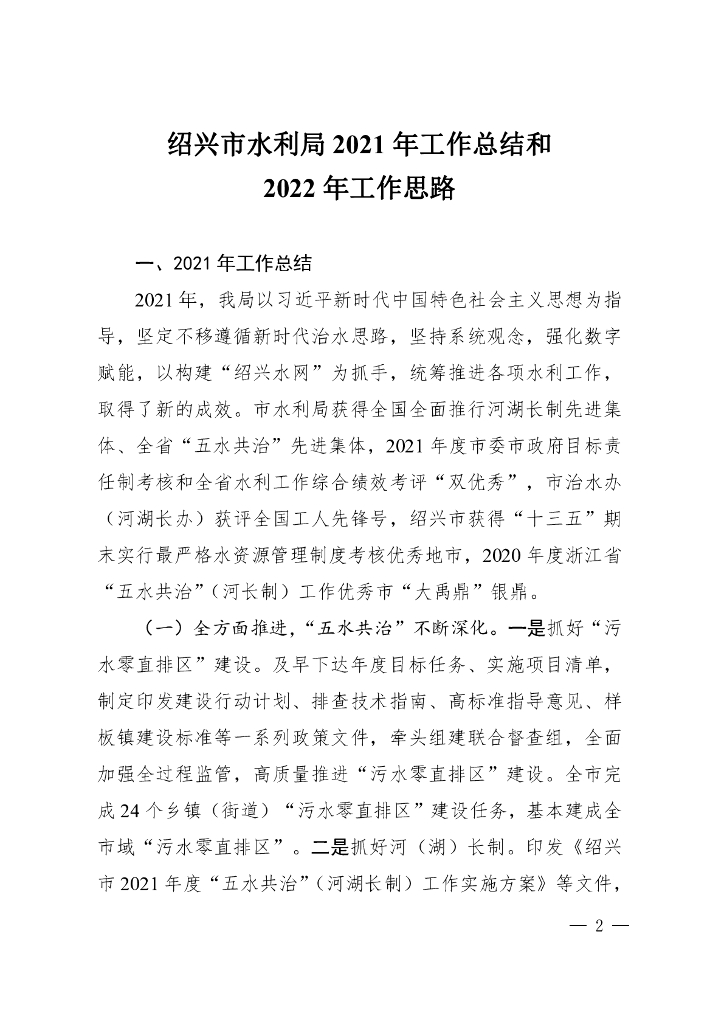 绍兴市水利局2021年工作总结和2022年工作思路.pdf