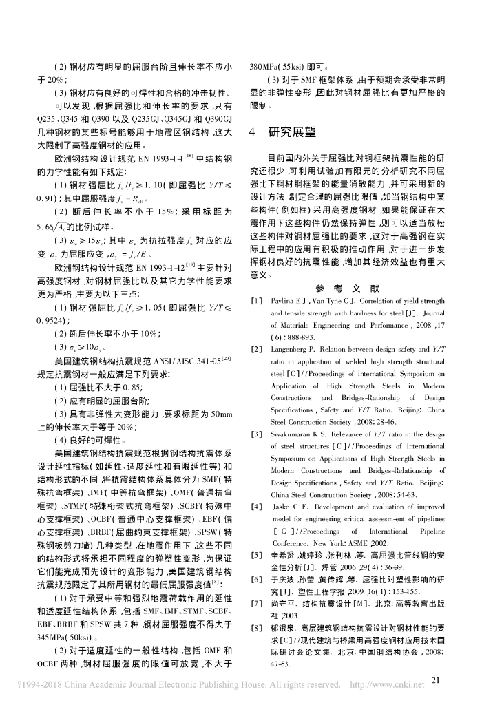 屈强比对钢框架抗震性能影响研究进展.pdf