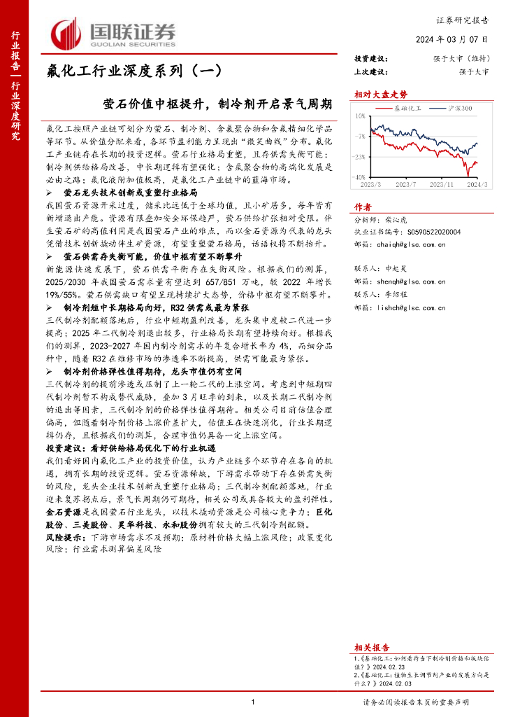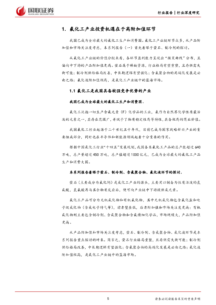 国联证券:氟化工行业深度系列(一):萤石价值中枢提升,制冷剂开启景气周期.pdf