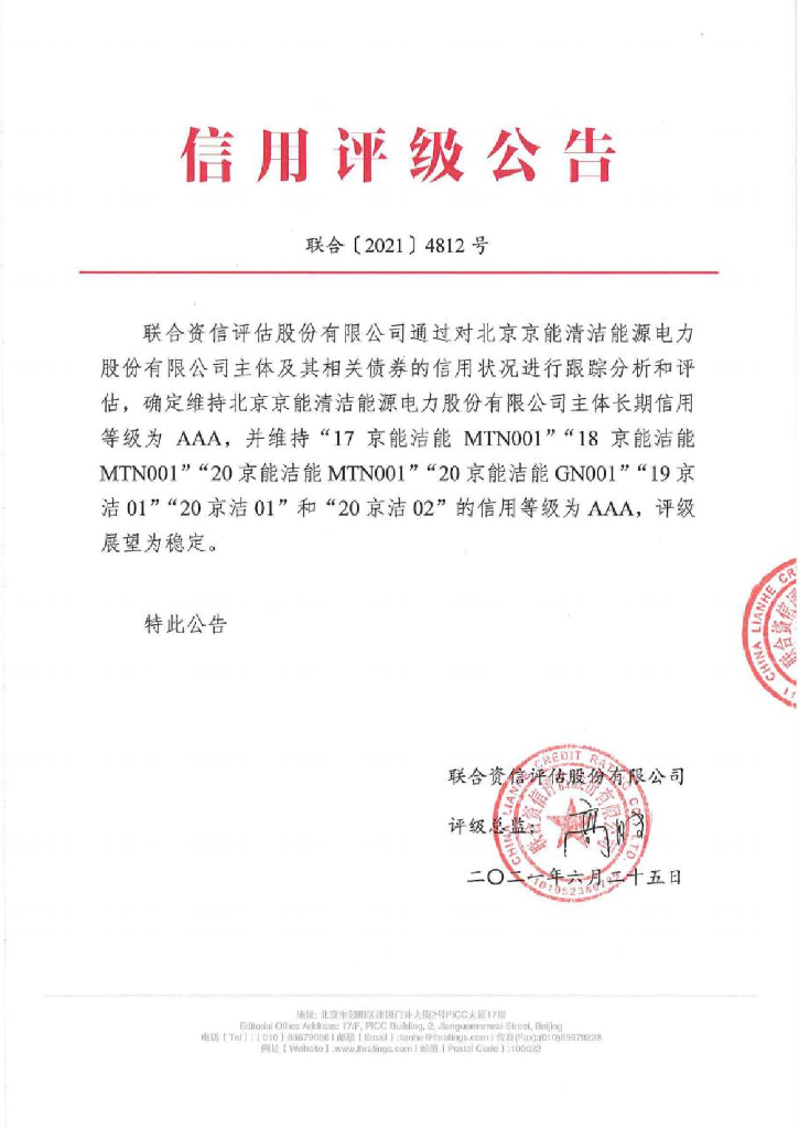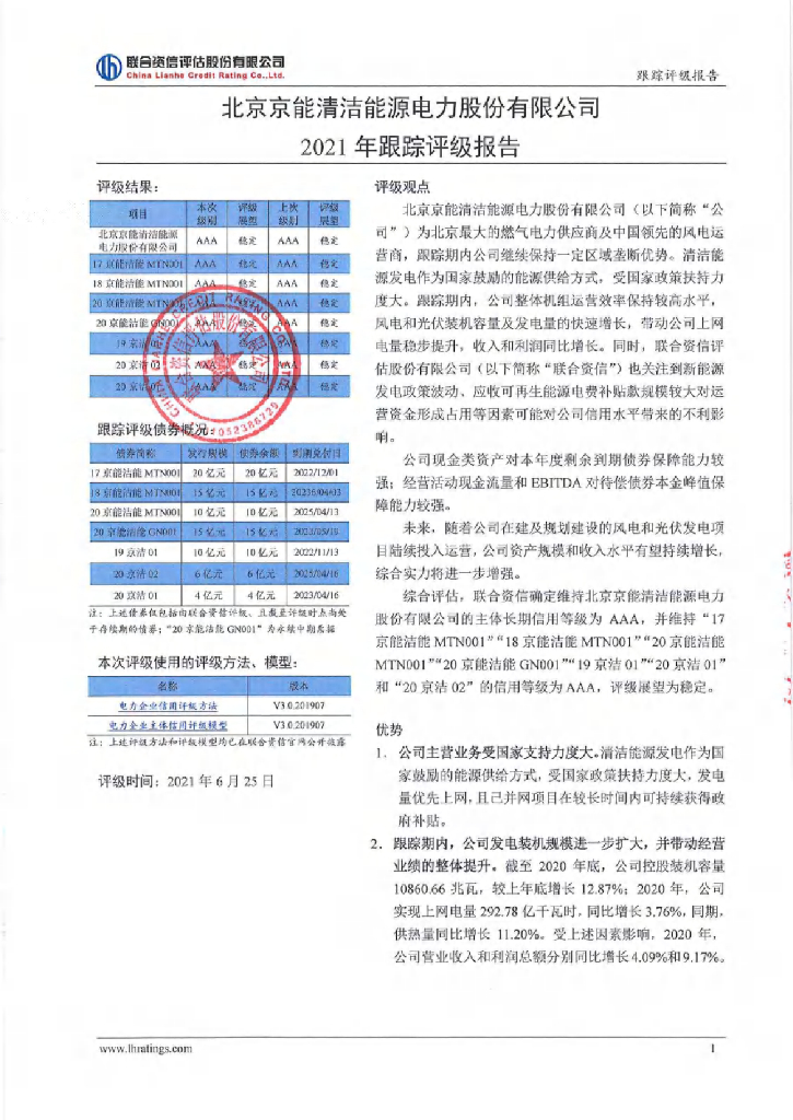 联合资信:北京京能清洁能源电力股份有限公司主体信用评级报告及跟踪评级安排.pdf