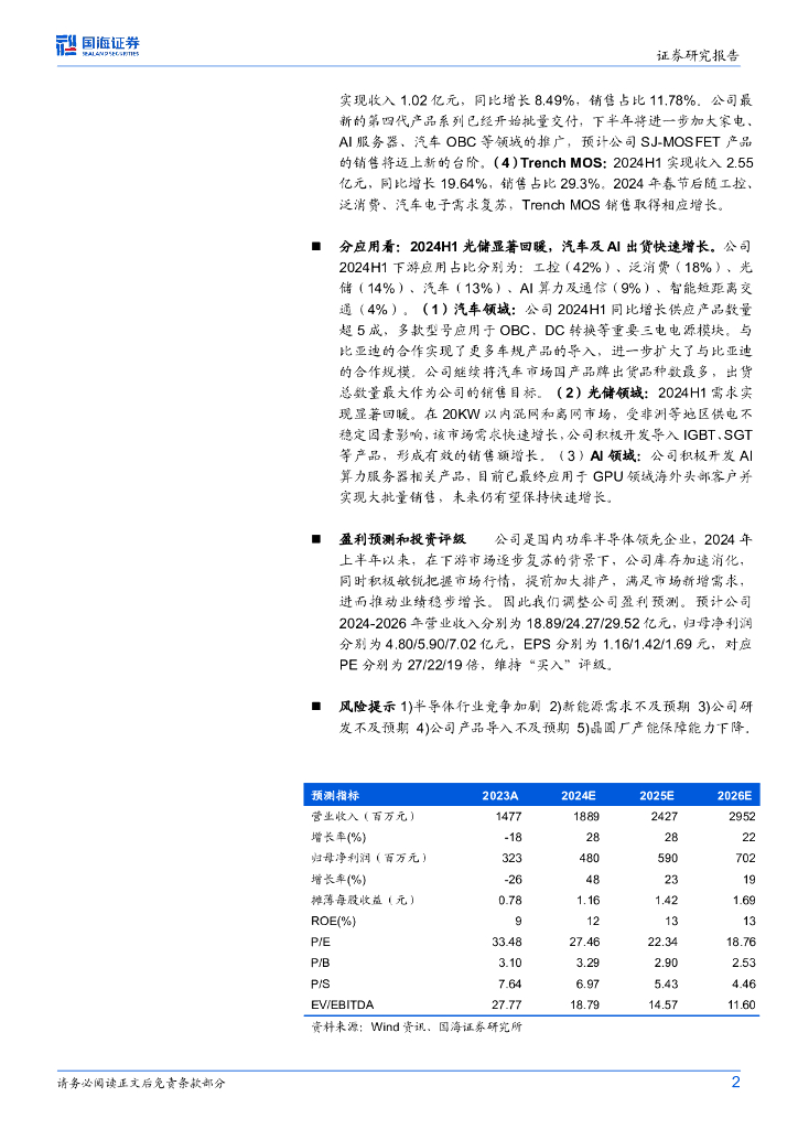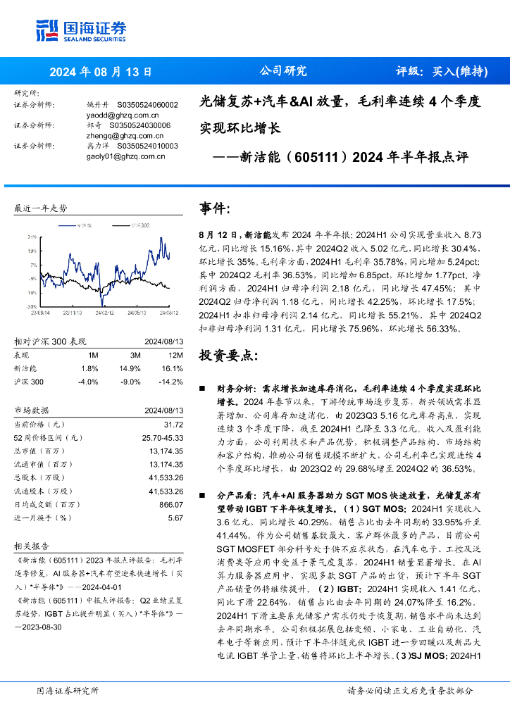 国海证券:新洁能(605111)-2024年半年报点评:光储复苏+汽车&AI放量,毛利率连续4个季度实现环比增长.pdf