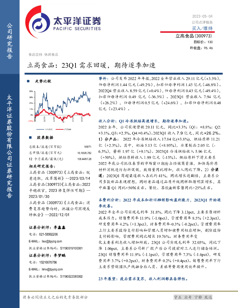 太平洋证券:立高食品:23Q1需求回暖,期待逐季加速.pdf