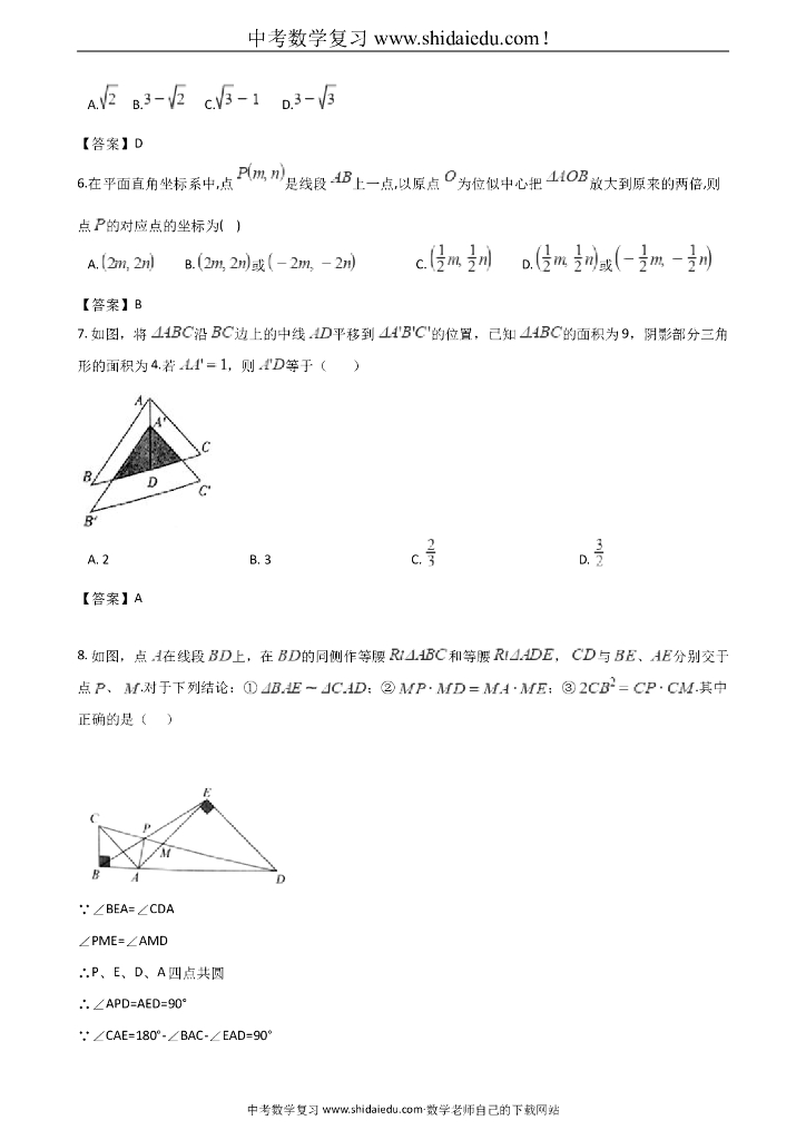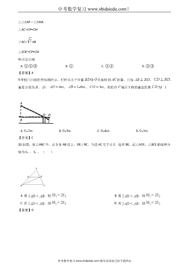 全国各地中考数学真题汇编:图形的相似(含答案)-精选版.doc