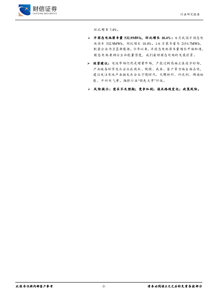 财信证券:新能源电池行业点评:6月半固态电池装车环比增长10.4%.pdf