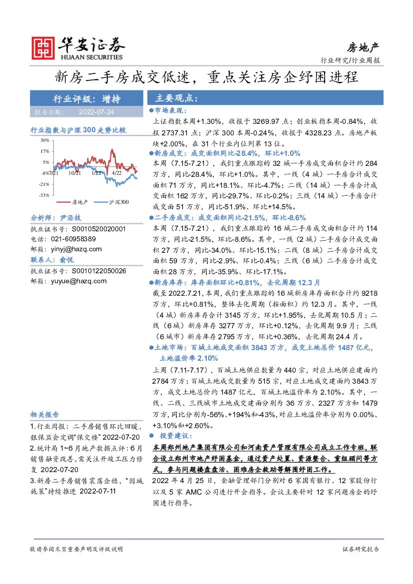 华安证券:房地产行业周报:新房二手房成交低迷,重点关注房企纾困进程.pdf