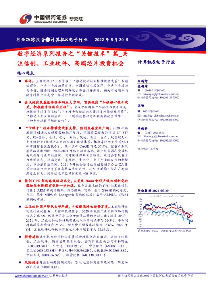 中国银河:计算机&电子行业跟踪报告:数字经济系列报告之“关键技术”篇_关注信创、工业软件、高端芯片投资机会.pdf