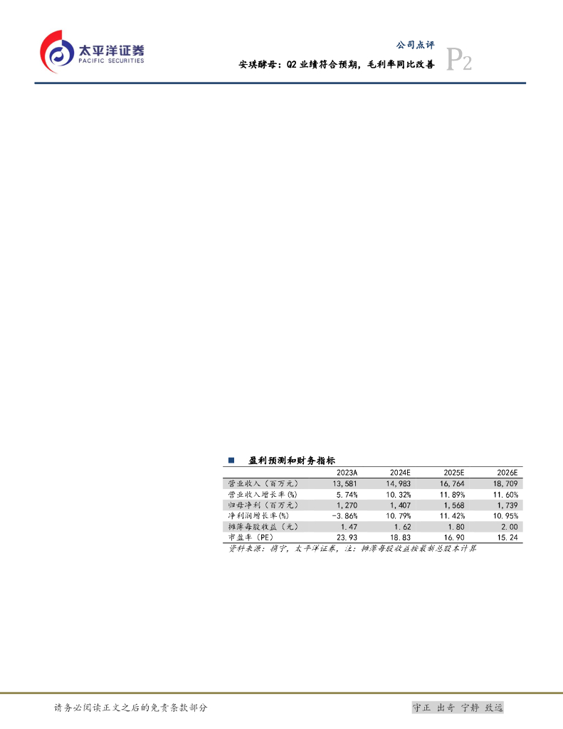 太平洋证券:安琪酵母:Q2业绩符合预期,毛利率同比改善.pdf
