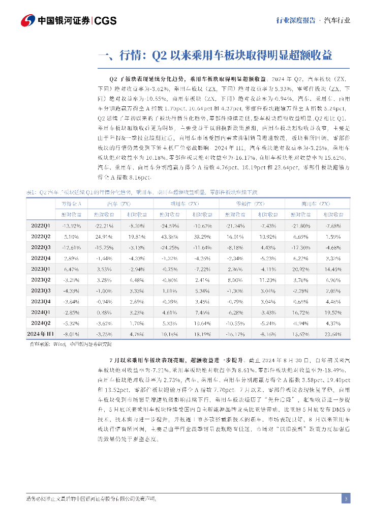 中国银河:汽车行业2024半年度业绩总结:板块业绩稳中有升,整车盈利表现亮眼.pdf
