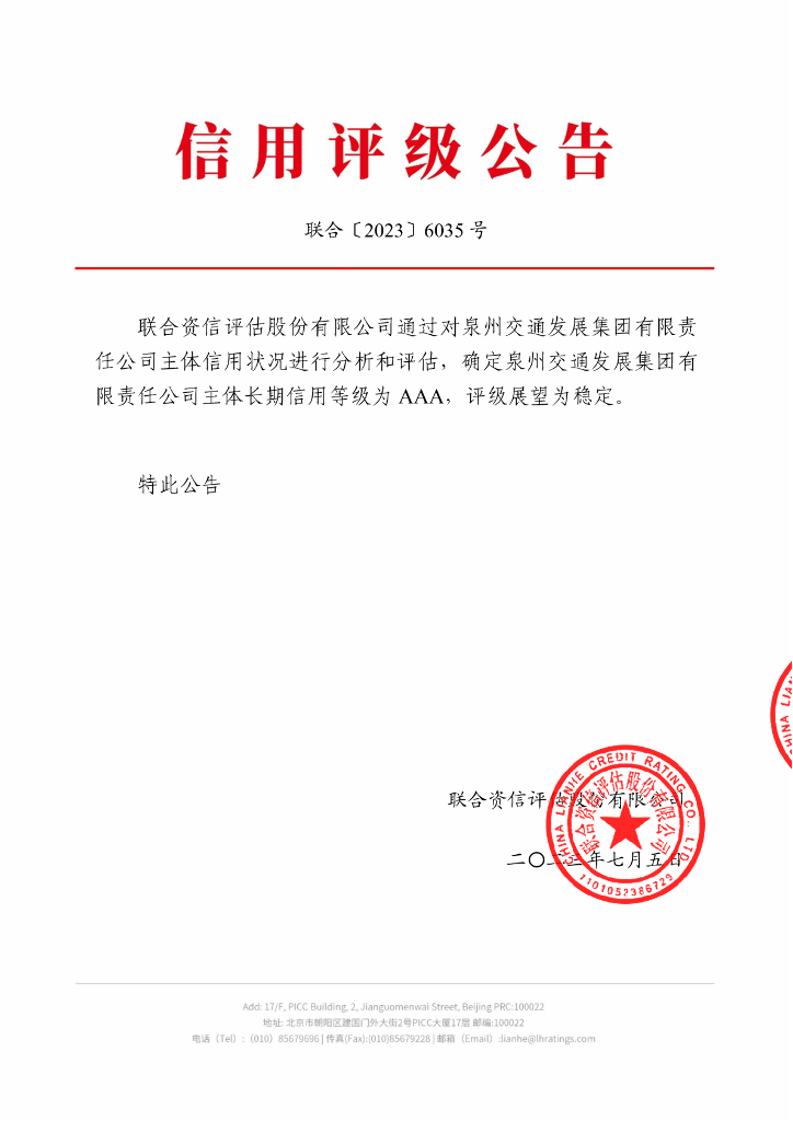 联合资信:泉州交通发展集团有限责任公司主体长期信用评级报告.pdf