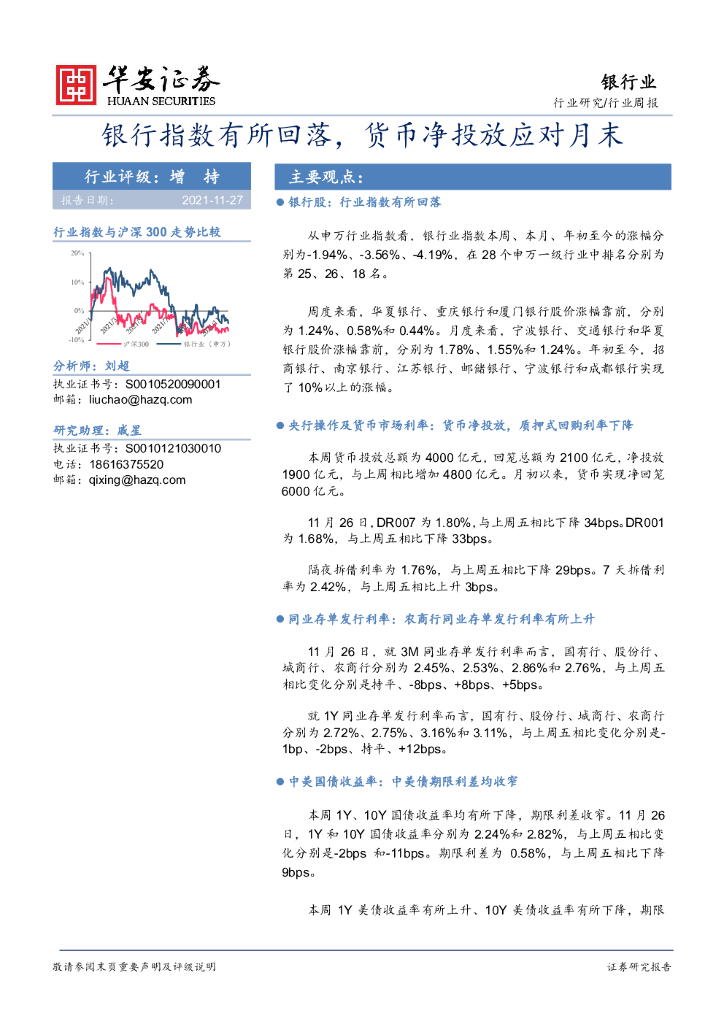 华安证券:银行业行业周报:银行指数有所回落,货币净投放应对月末.pdf