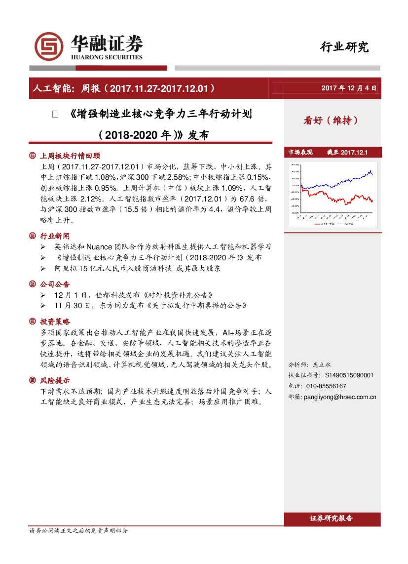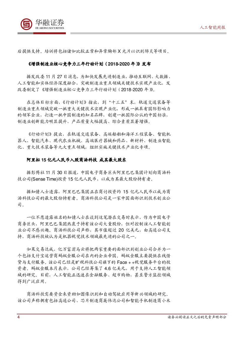 华融证券:人工智能周报:《增强制造业核心竞争力三年行动计划(2018-2020年)》发布.pdf