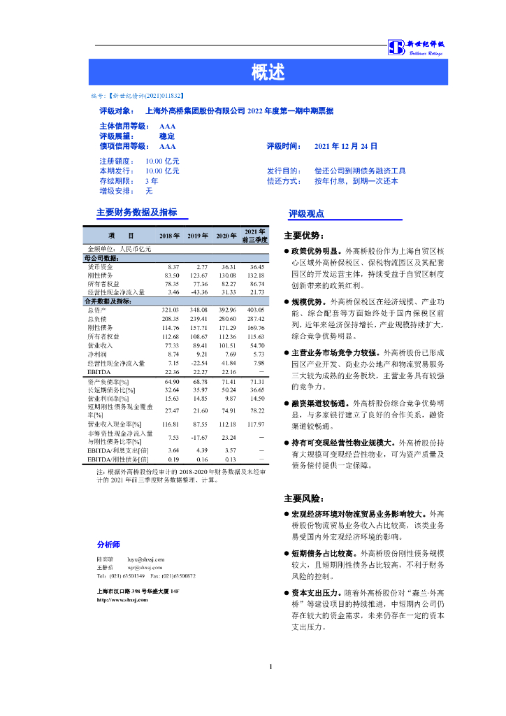 新世纪:上海外高桥集团股份有限公司2022年度第一期中期票据信用评级报告.pdf