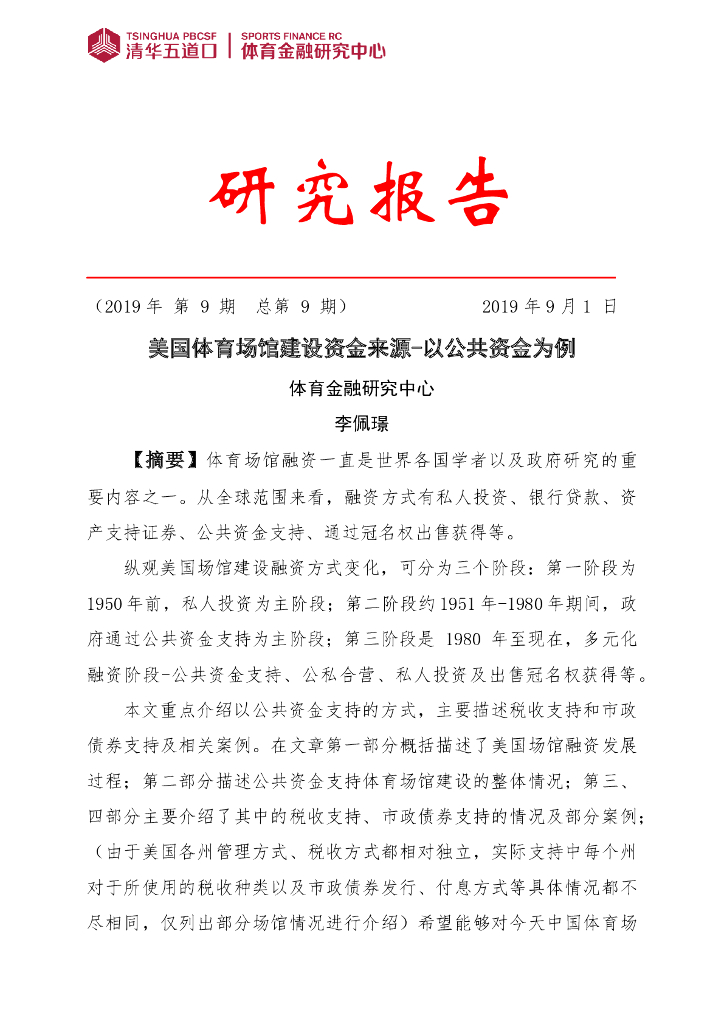 清华五道口&体育金融研究中心:2019年第9期美国体育场馆建设资金来源研究报告-以公共资金为例.pdf