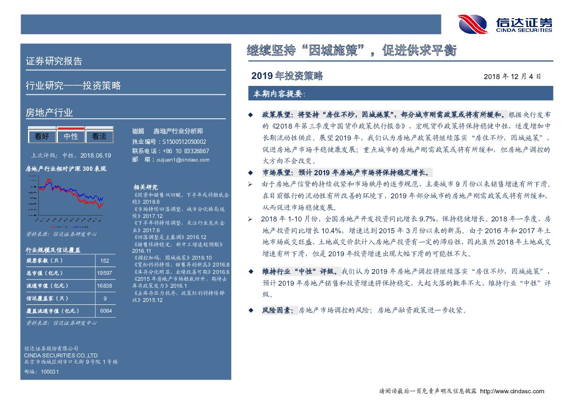信达证券:房地产行业2019年投资策略:继续坚持“因城施策”,促进供求平衡.pdf