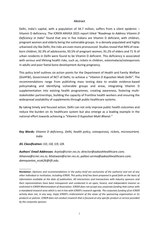 印度国际经济关系研究理事会(ICRIER):2025年增加的维生素D缺乏:国家首都地区(NCT)卫生与家庭福利部的行动要点报告(英文版).pdf