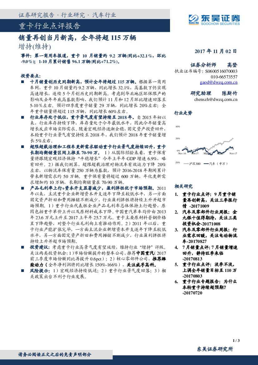东吴证券:重卡行业点评报告:销量再创当月新高,全年将超115万辆.pdf