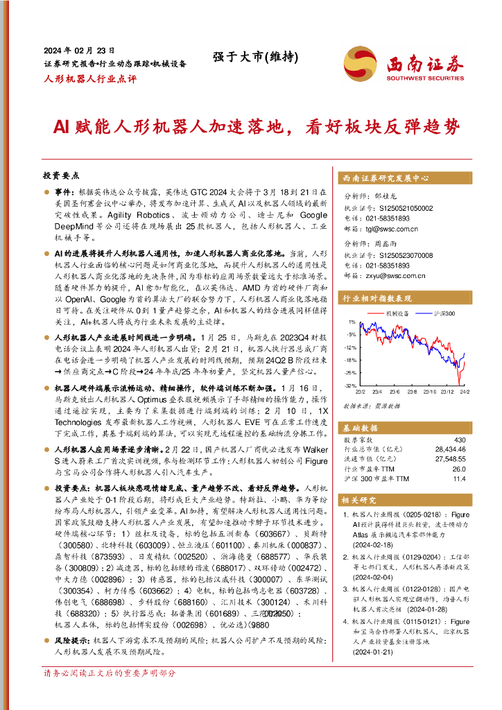 西南证券:人形机器人行业点评:AI赋能人形机器人加速落地,看好板块反弹趋势.pdf