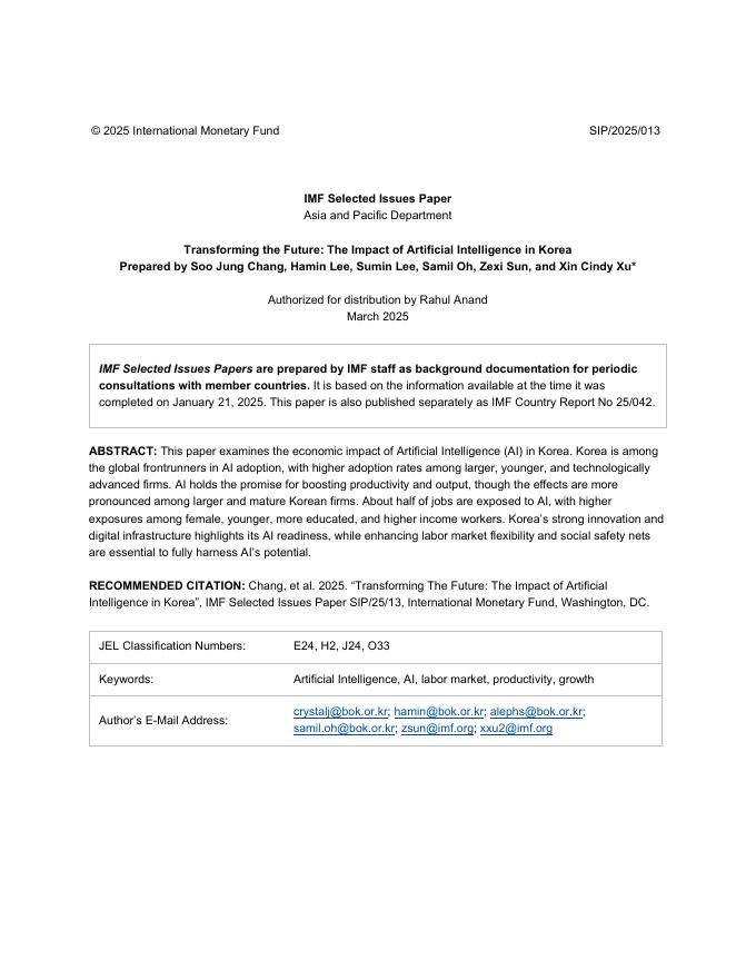 国际货币基金组织:改变未来:人工智能在韩国的影响(英文版).pdf