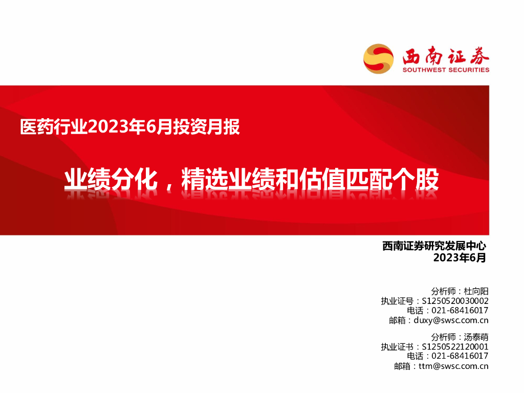 西南证券:医药行业2023年6月投资月报:业绩分化,精选业绩和估值匹配个股.pdf