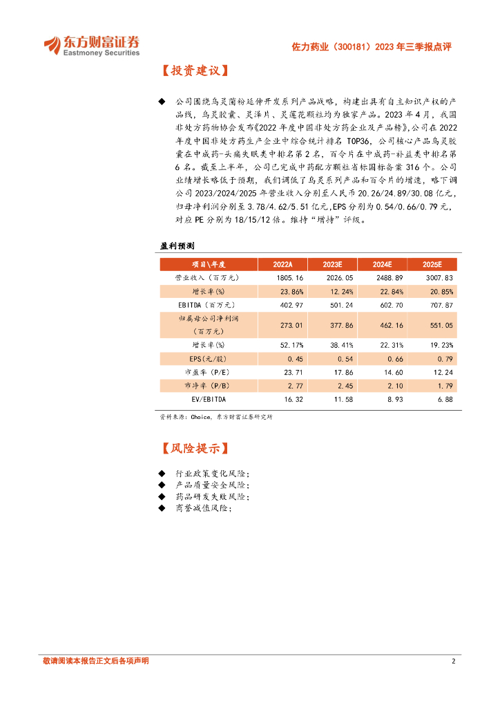东方财富证券:佐力药业(300181)-2023年三季报点评:短期收入端承压,归母净利润保持较好增长.pdf