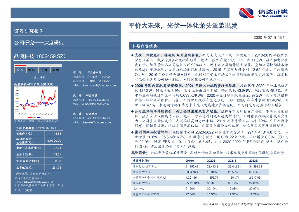 信达证券:晶澳科技(002459)-平价大未来,光伏一体化龙头重装出发.pdf