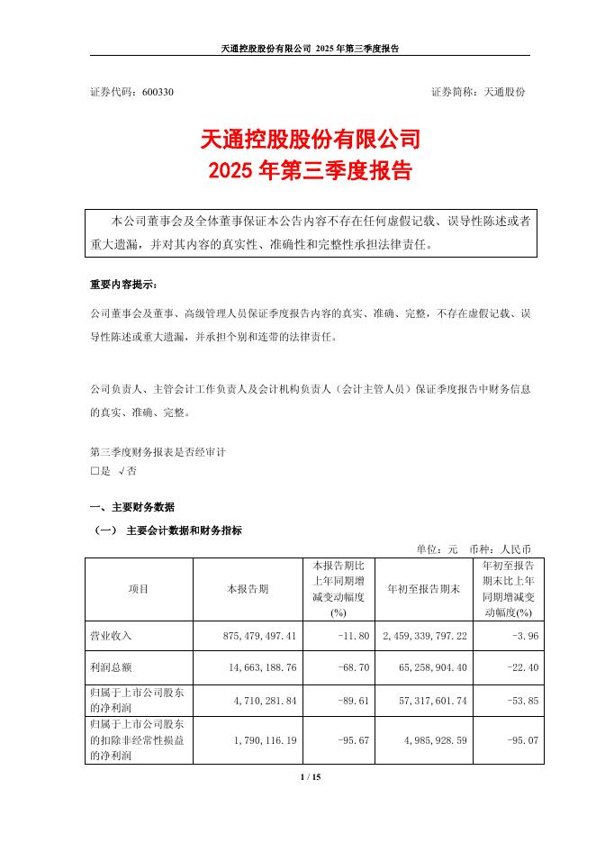 600330-天通股份:天通股份2025年第三季度报告.pdf