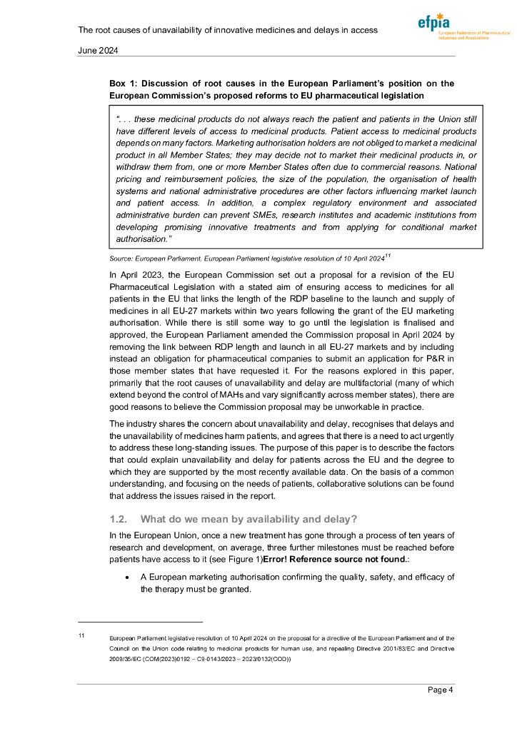 EFPIA:2024年创新药物无法获得和延迟获得的根本原因:缩短等待时间(英文版).pdf