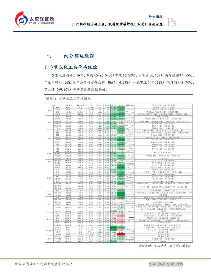 太平洋证券:化工行业周报(5/26-5/30):三代制冷剂价格上涨,友道化学爆炸提升农药行业关注度.pdf