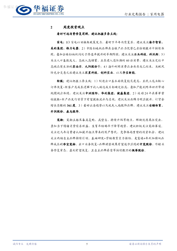 华福证券:家用电器行业24W48周观点:促消费政策频出,新一轮以旧换新力度和范围值得期待.pdf