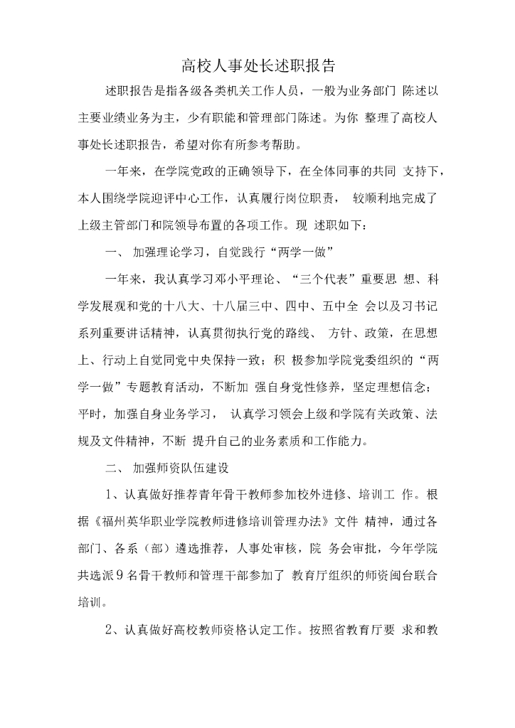 高校人事处长述职报告.doc