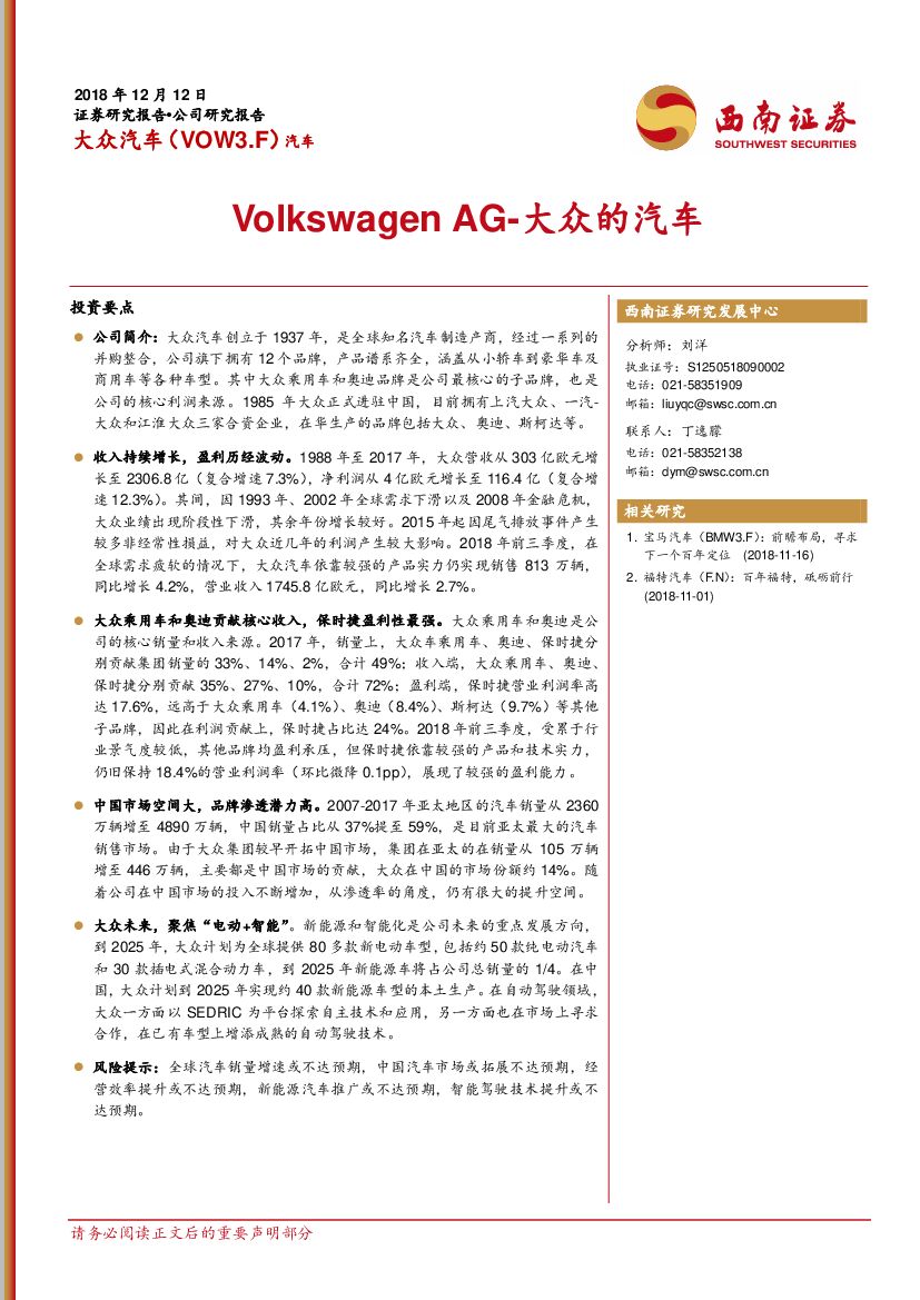 西南证券:Volkswagen AG-大众的汽车.pdf