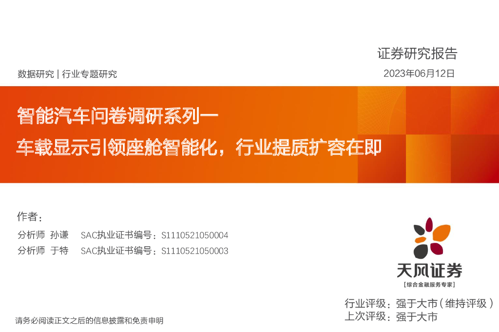 天风证券:智能汽车问卷调研系列一:车载显示引领座舱智能化,行业提质扩容在即.pdf