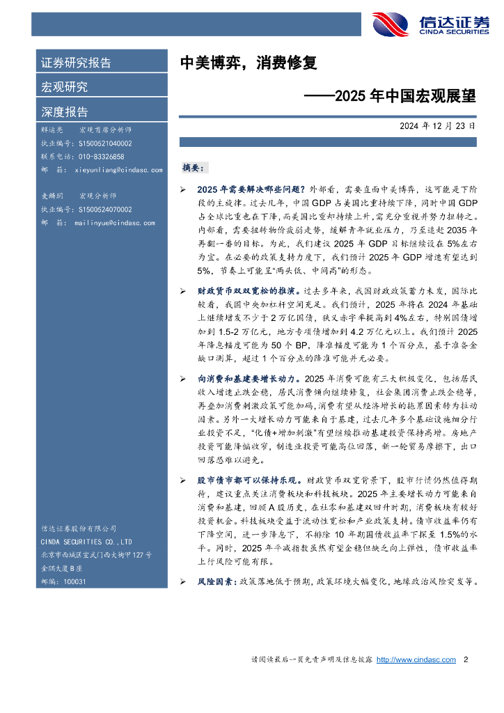 信达证券:2025年中国宏观展望:中美博弈,消费修复.pdf