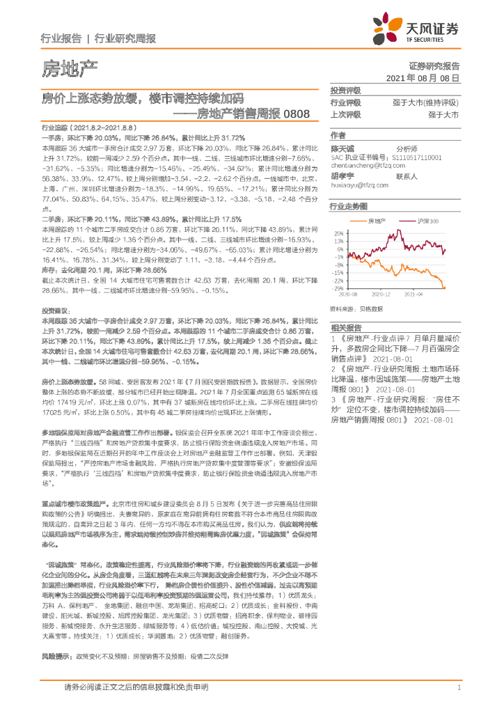 天风证券:房地产销售周报:房价上涨态势放缓,楼市调控持续加码.pdf