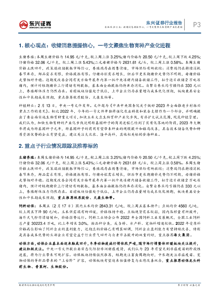 东兴证券:农林牧渔行业周观点(2023年第7周):收储消息提振信心,一号文聚焦生物育种产业化进程.pdf