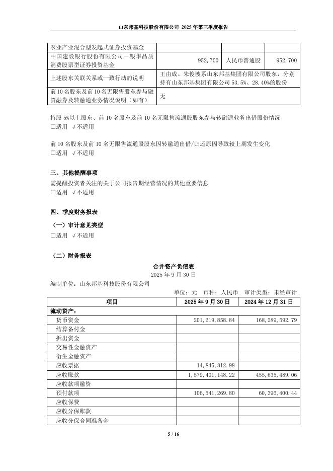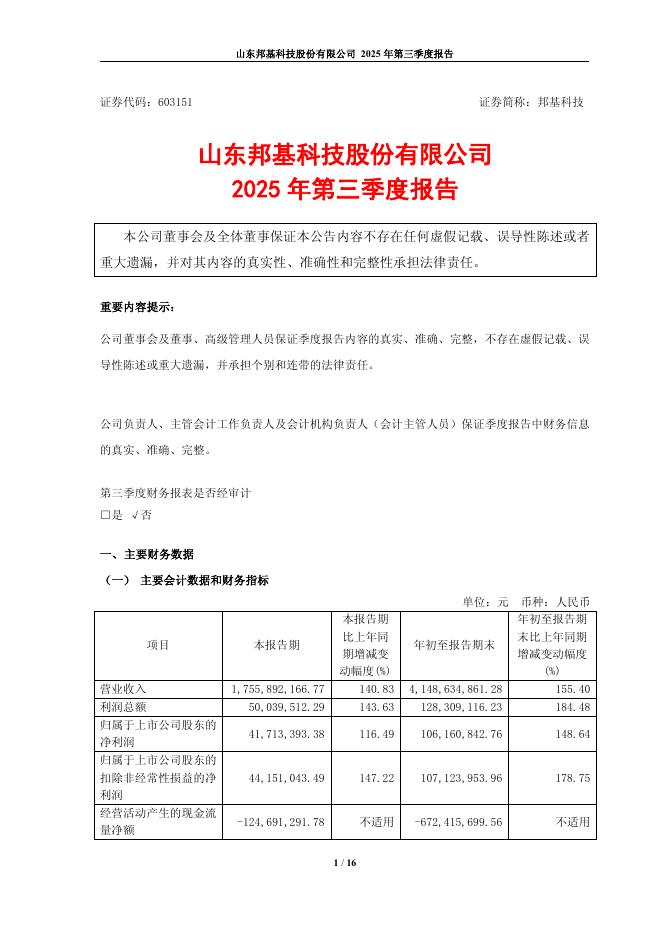 603151-邦基科技:山东邦基科技股份有限公司2025年第三季度报告.pdf