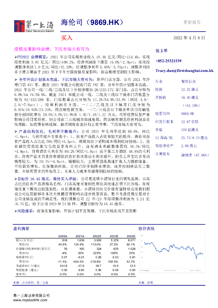 第一上海证券:海伦司(09869)港股公司研究报告-疫情反复影响业绩,下沉市场大有可为.pdf